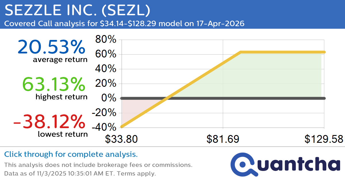 Quantchabot has detected a new Covered Call trade opportunity for SEZZLE INC. (SEZL) for the 17-Apr-2026 expiration period. You can analyze the opportunity in depth over at the Quantcha Options Search Engine.