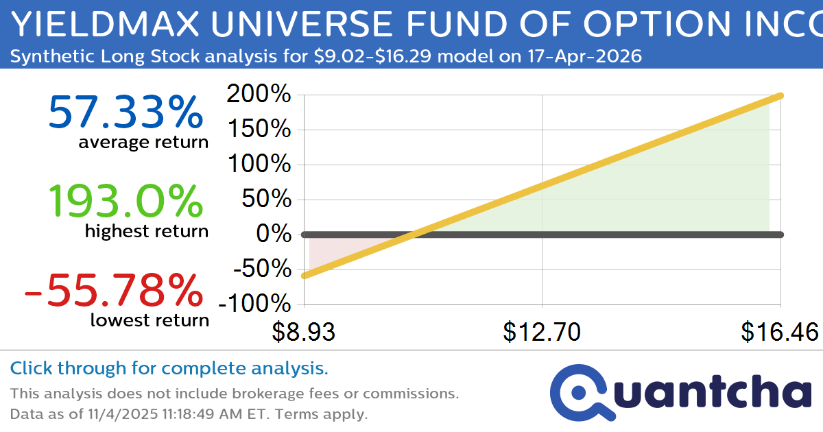 Quantchabot has detected a new Synthetic Long Stock trade opportunity for YIELDMAX UNIVERSE FUND OF OPTION INCOME ETFS (YMAX) for the 17-Apr-2026 expiration period. You can analyze the opportunity in depth over at the Quantcha Options Search Engine.