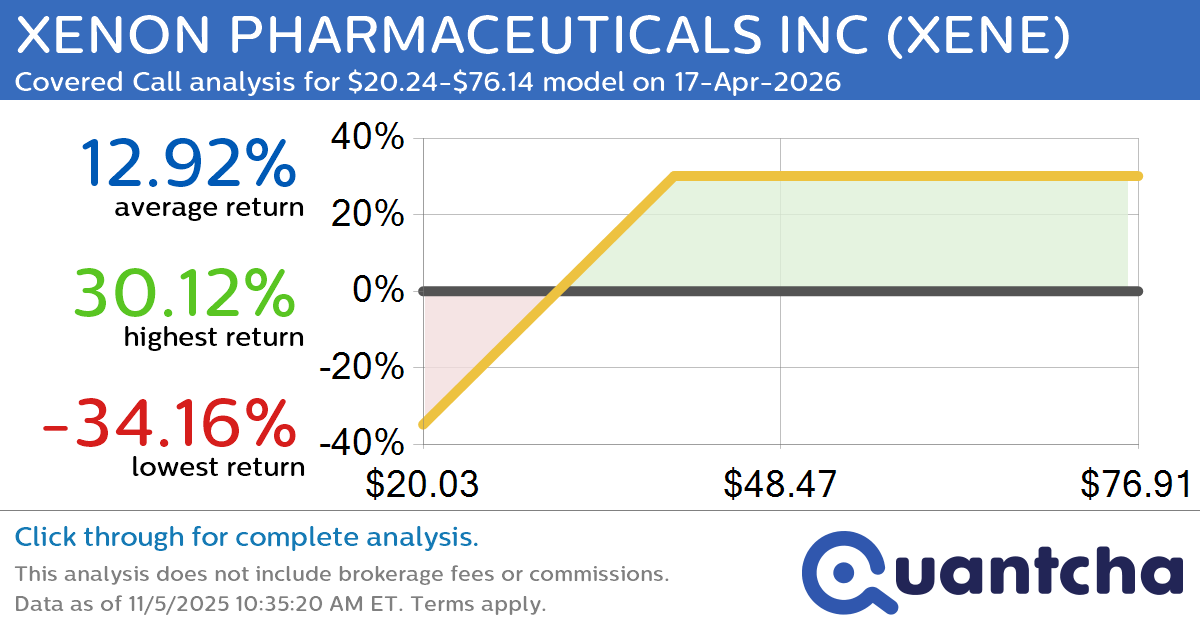 Quantchabot has detected a new Covered Call trade opportunity for XENON PHARMACEUTICALS INC (XENE) for the 17-Apr-2026 expiration period. You can analyze the opportunity in depth over at the Quantcha Options Search Engine.