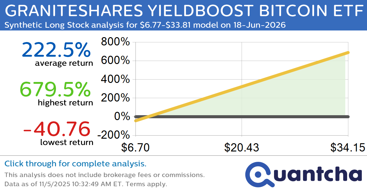 Quantchabot has detected a new Synthetic Long Stock trade opportunity for GRANITESHARES YIELDBOOST BITCOIN ETF (XBTY) for the 18-Jun-2026 expiration period. You can analyze the opportunity in depth over at the Quantcha Options Search Engine.