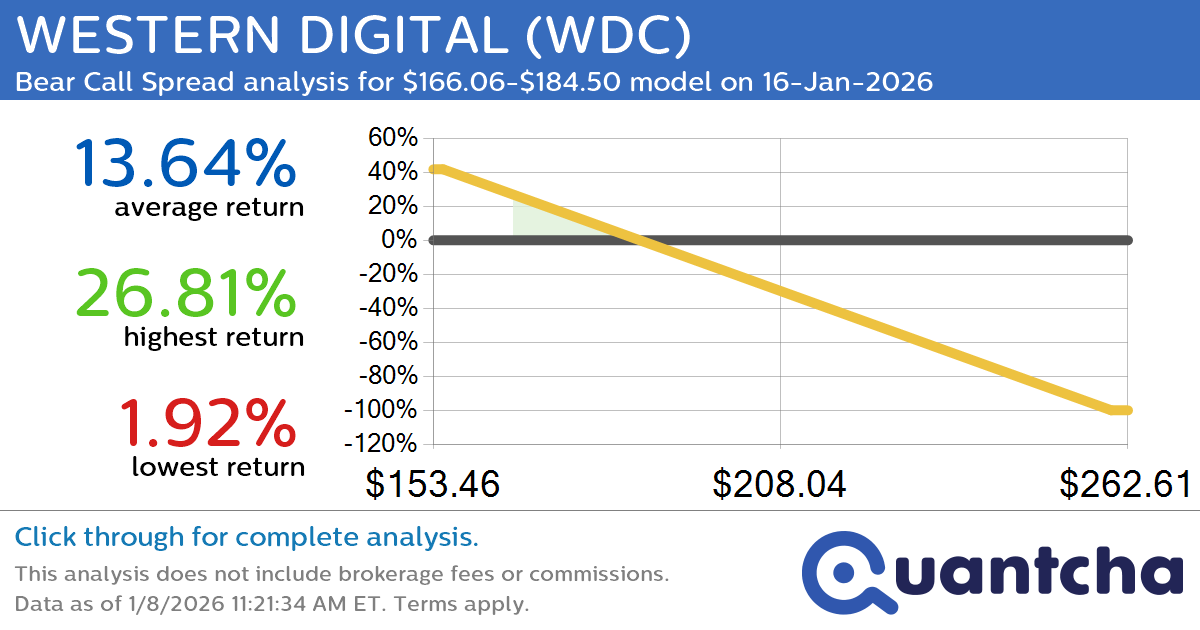 Quantchabot has detected a new Bear Call Spread trade opportunity for WESTERN DIGITAL (WDC) for the 16-Jan-2026 expiration period. You can analyze the opportunity in depth over at the Quantcha Options Search Engine.