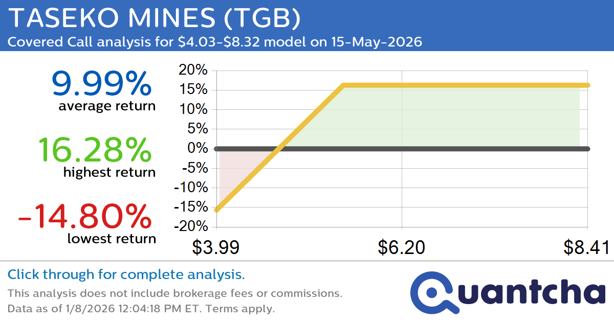 Quantchabot has detected a new Covered Call trade opportunity for TASEKO MINES (TGB) for the 15-May-2026 expiration period. You can analyze the opportunity in depth over at the Quantcha Options Search Engine.