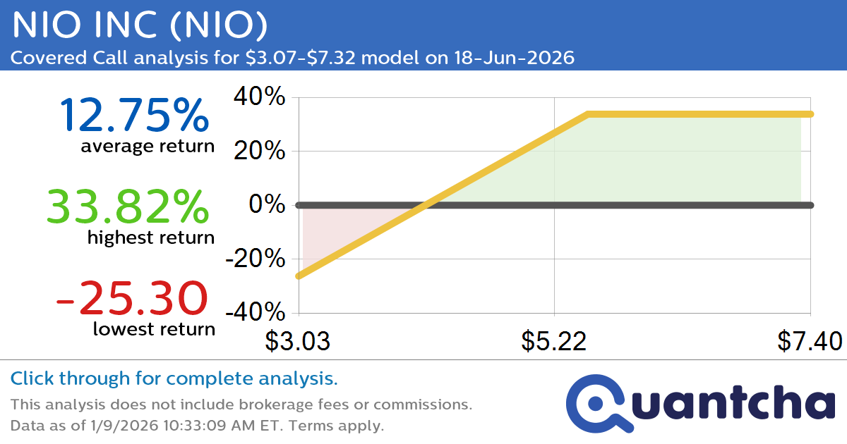 Quantchabot has detected a new Covered Call trade opportunity for NIO INC (NIO) for the 18-Jun-2026 expiration period. You can analyze the opportunity in depth over at the Quantcha Options Search Engine.