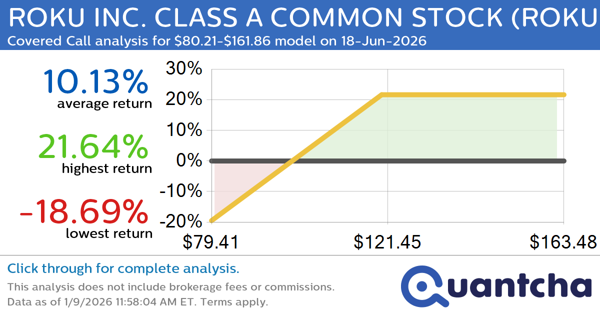 Quantchabot has detected a new Covered Call trade opportunity for ROKU INC. CLASS A COMMON STOCK (ROKU) for the 18-Jun-2026 expiration period. You can analyze the opportunity in depth over at the Quantcha Options Search Engine.