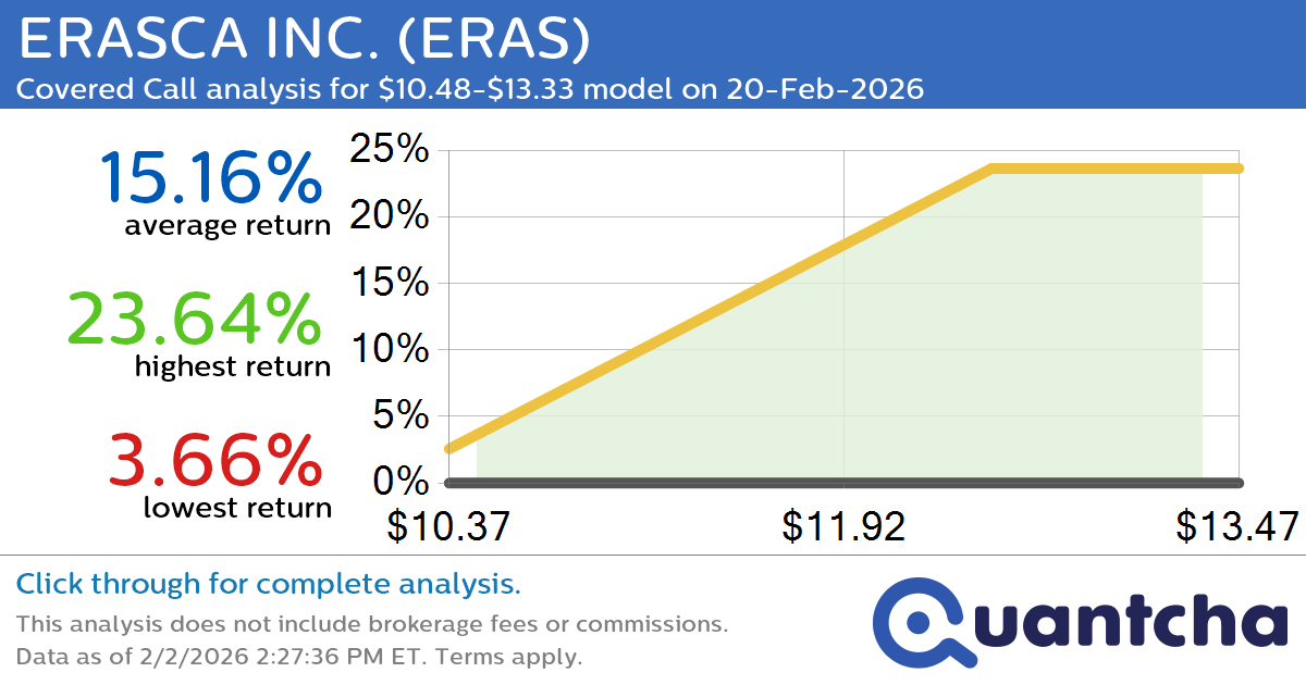 Quantchabot has detected a new Covered Call trade opportunity for ERASCA INC. (ERAS) for the 20-Feb-2026 expiration period. You can analyze the opportunity in depth over at the Quantcha Options Search Engine.