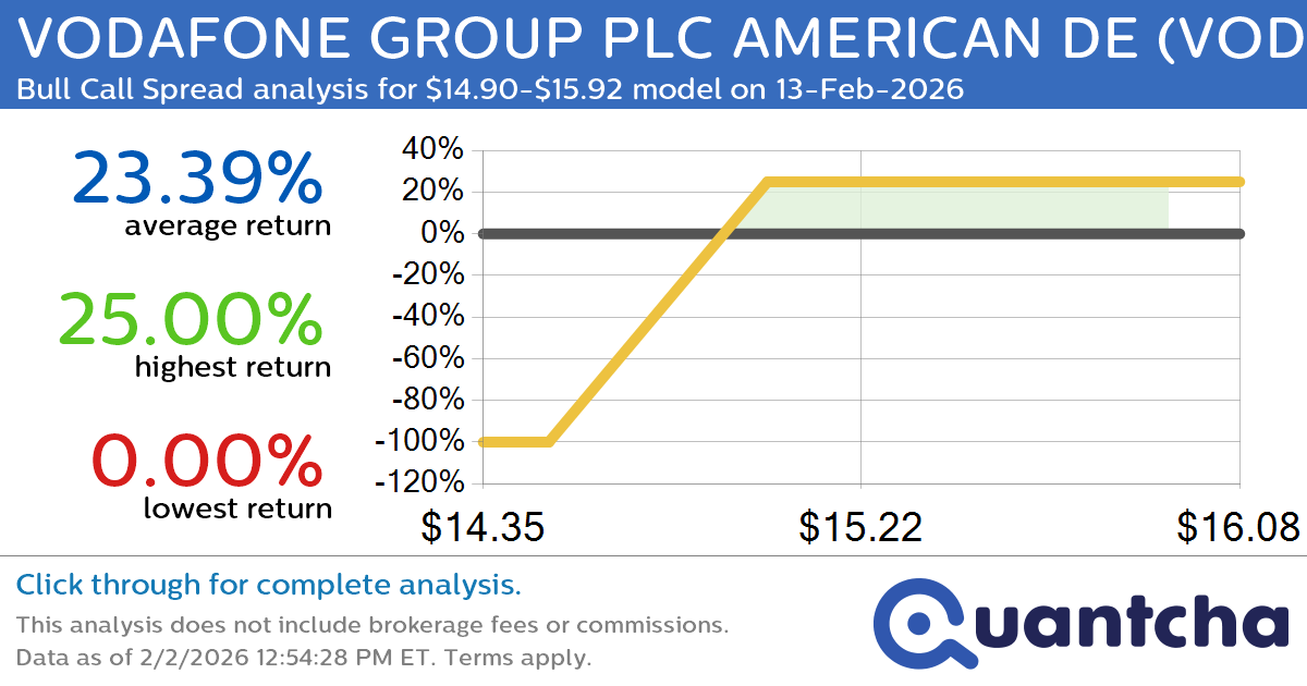 Quantchabot has detected a new Bull Call Spread trade opportunity for VODAFONE GROUP PLC AMERICAN DE (VOD) for the 13-Feb-2026 expiration period. You can analyze the opportunity in depth over at the Quantcha Options Search Engine.