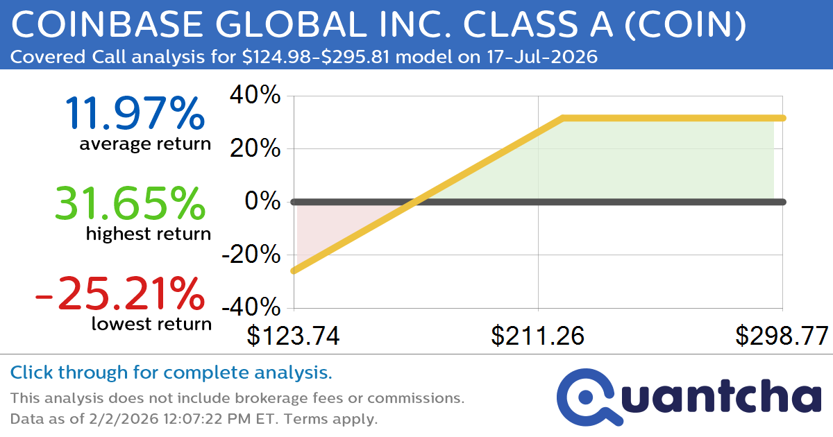 Quantchabot has detected a new Covered Call trade opportunity for COINBASE GLOBAL INC. CLASS A (COIN) for the 17-Jul-2026 expiration period. You can analyze the opportunity in depth over at the Quantcha Options Search Engine.