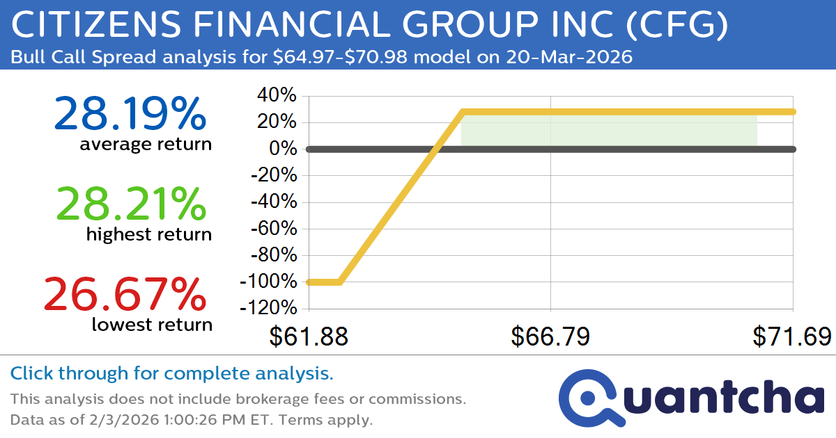 Quantchabot has detected a new Bull Call Spread trade opportunity for CITIZENS FINANCIAL GROUP INC (CFG) for the 20-Mar-2026 expiration period. You can analyze the opportunity in depth over at the Quantcha Options Search Engine.
