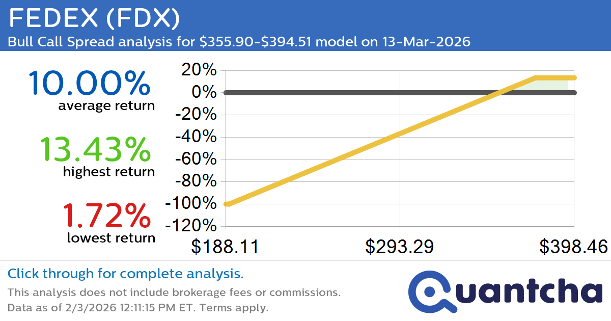 Quantchabot has detected a new Bull Call Spread trade opportunity for FEDEX (FDX) for the 13-Mar-2026 expiration period. You can analyze the opportunity in depth over at the Quantcha Options Search Engine.
